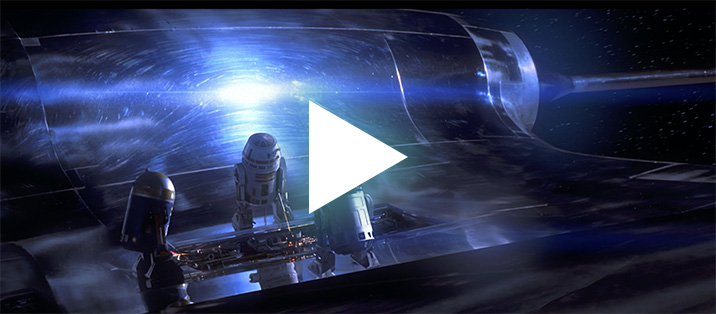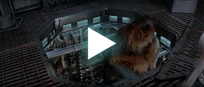 R2-D2 activates the Falcon’s shield, protecting them from attacks
