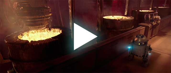 R2-D2 overrides the controls at the last second, stopping the lava spout from opening