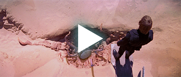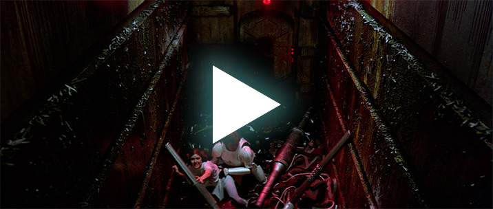 R2-D2 launches himself in to the garbage compactor, wedging it open
